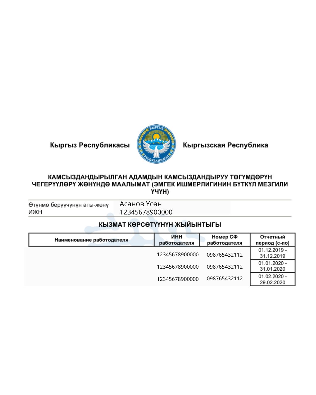 6. Алынган маалымкаттан камсыздандыруу төгүмдөрүн чегерүүлөрүңүз жөнүндө маалыматты көрө аласыз