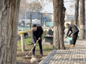 Ишембиликтин жүрүшүндө кызматкерлер тротуарларды шыпырып, газон аймактарын тазалап, сейил бактын аймагындагы тиричилик калдыктарын жыйнашты.